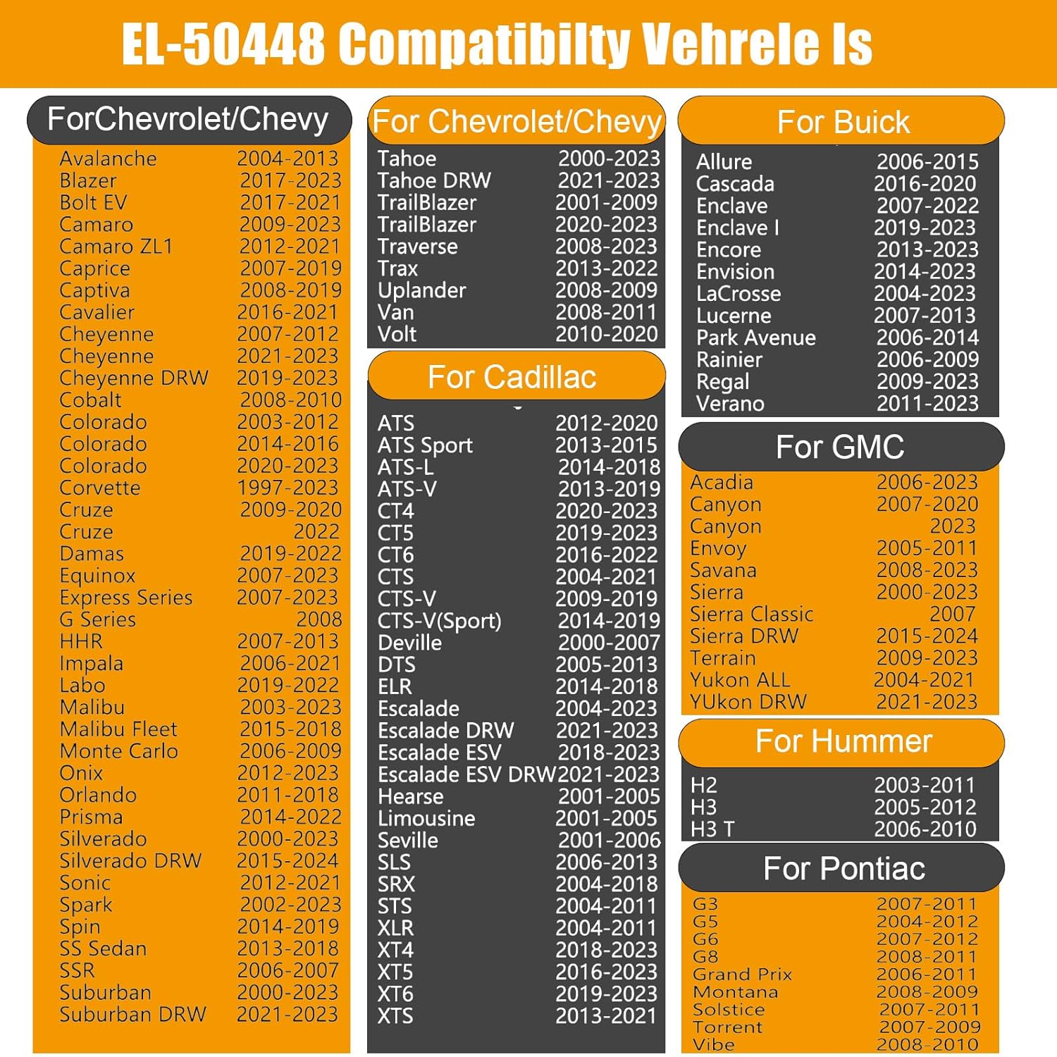 This tool works with most GM vehicles using 315 or 433 MHz TPMS sensors, including Buick, GMC, Chevrolet, and Opel. It is not designed for large trucks.